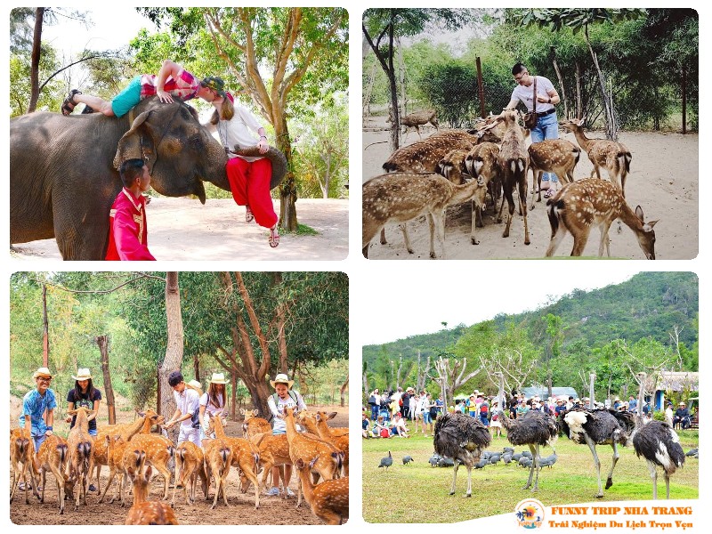 - Tiếp xúc thân thiện cùng những chú đà điểu, hươu sao dạn dĩ, đáng yêu. Thưởng thức chương trình xiếc voi, trăn lạnh lùng.