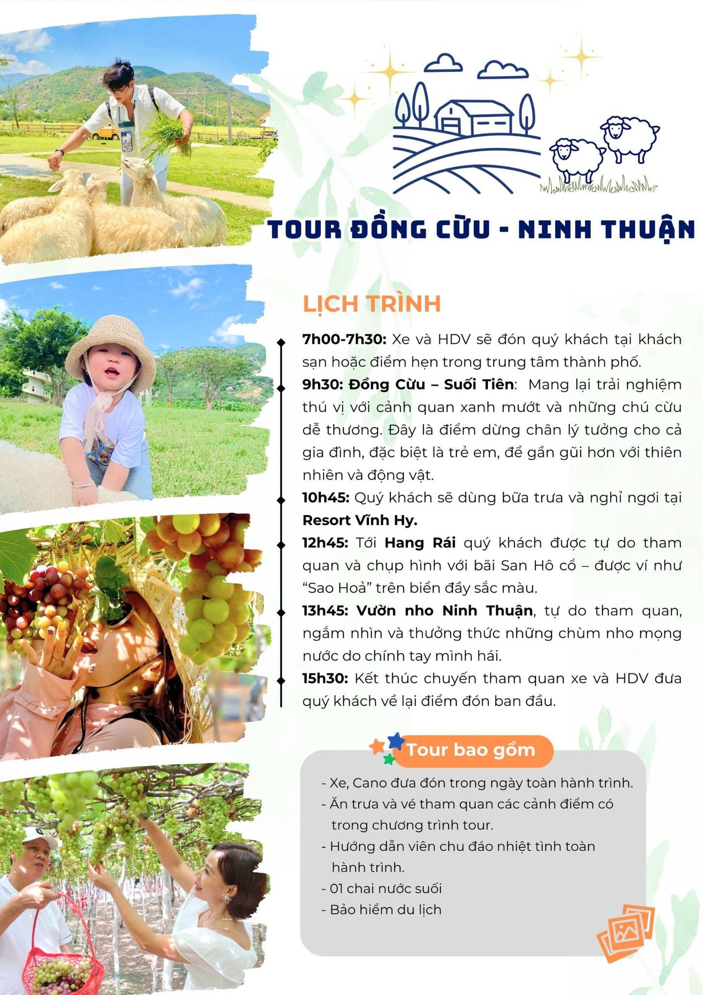 Xe và HDV đưa khách đến với ĐỒNG CỪU SUỐI TIÊN. Đây là điểm du lịch mới toanh nằm kế bên Ninh Thuận. Nơi đây là điểm check-in sống ảo cuốn hút bởi ở đây có những chú cừu đáng yêu, thảm cỏ xanh bát ngát, dòng sông uốn lượn…