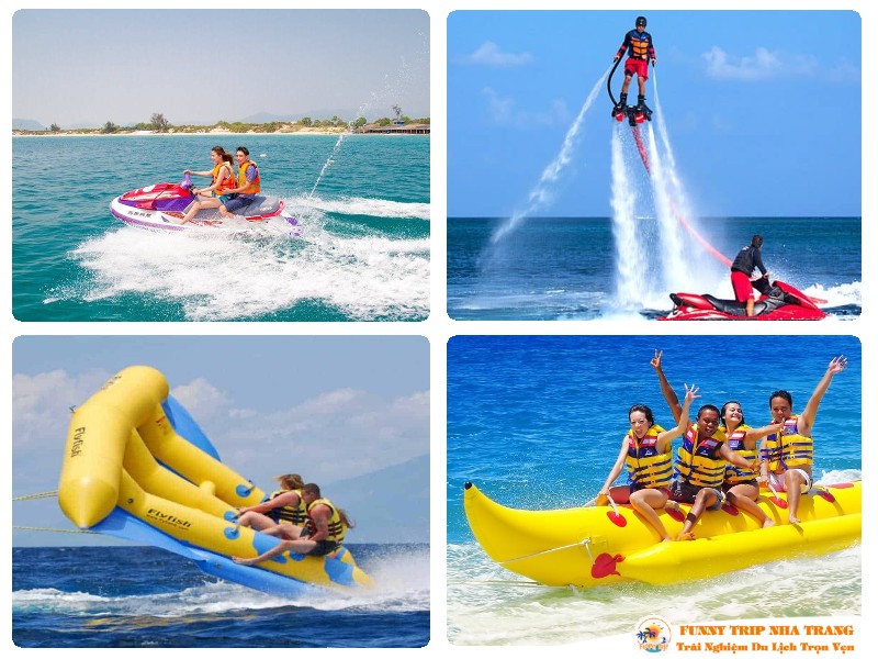 Ngoài ra quý khách có thể đăng kí tham gia các trò chơi biển như: moto nước, phao chuối, bay dù, lặn biển….Dịch vụ lặn biển khám phá đáy đại dương bằng bình dưỡng khí hoặc đi bộ dưới đáy biển, có chuyên viên đi kèm. Quý khách thoải mái ngắm nhìn những loài san hô tuyệt đẹp, các đàn cá, các loài sinh vật biển quý hiếm của khu bảo tồn biển lớn nhất Việt Nam. Quý khách không biết bơi sẽ được các huấn luyện viên lặn đi cùng xử lý mọi thao tác kỹ thuật trong suốt quá trình tham gia khám phá đáy đại dương. ( chi phí tự túc)